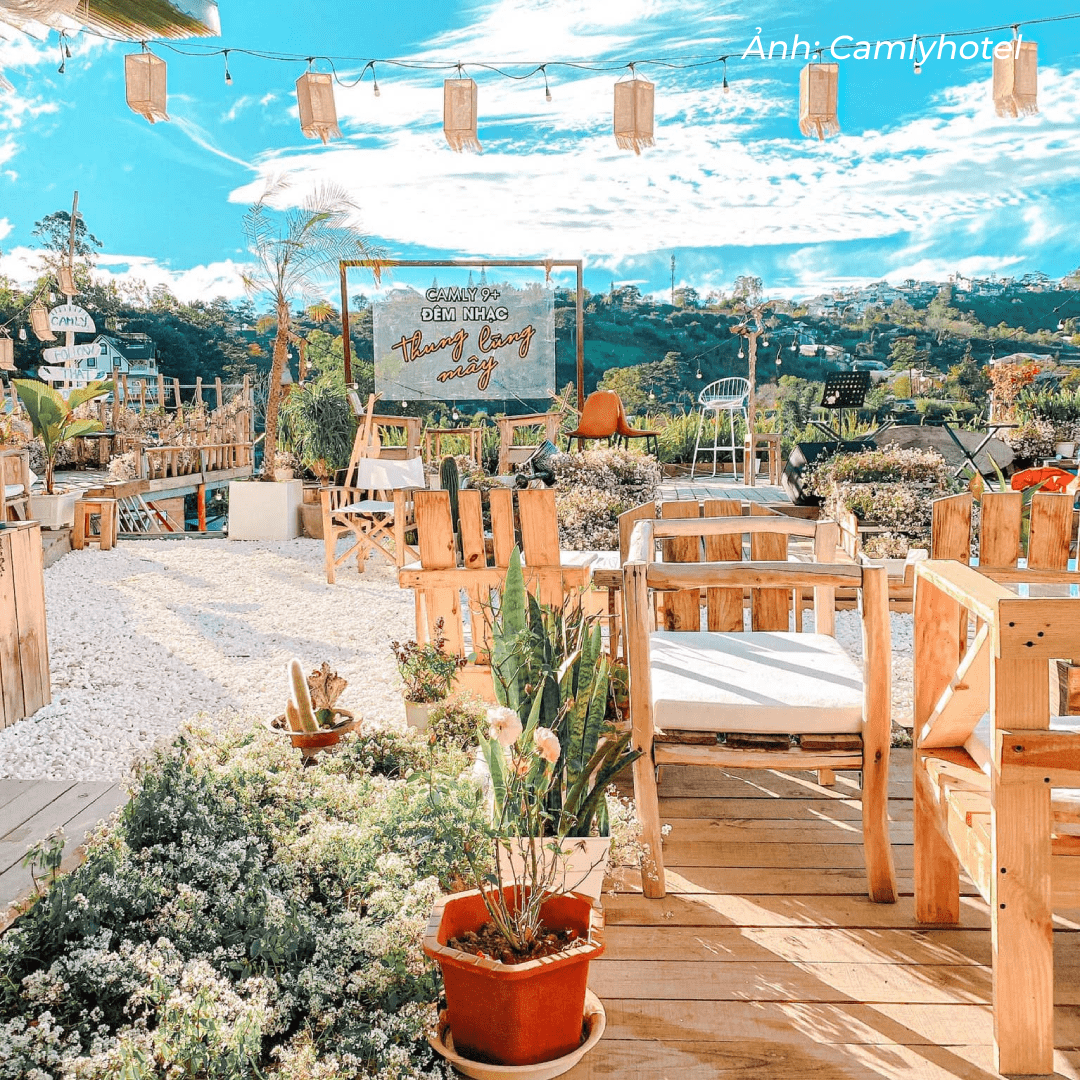 Quán cà phê sở hữu không gian mở, tọa lạc ở vị trí đắc địa trên cao. Từ đây, bạn có cơ hội ngắm toàn cảnh thông xanh, thiên nhiên hùng vĩ.
