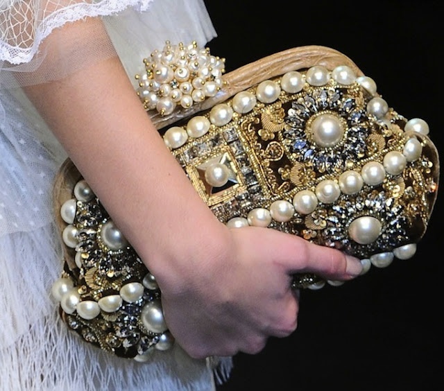 Hình ảnh chiếc clutch được hãng thời trang Dolce & Gabbana giới thiệu trên sàn diễn thời trang thu đông 2012 - 2013. Chiếc ví cầm tay này có giá khoảng 120 triệu đồng.