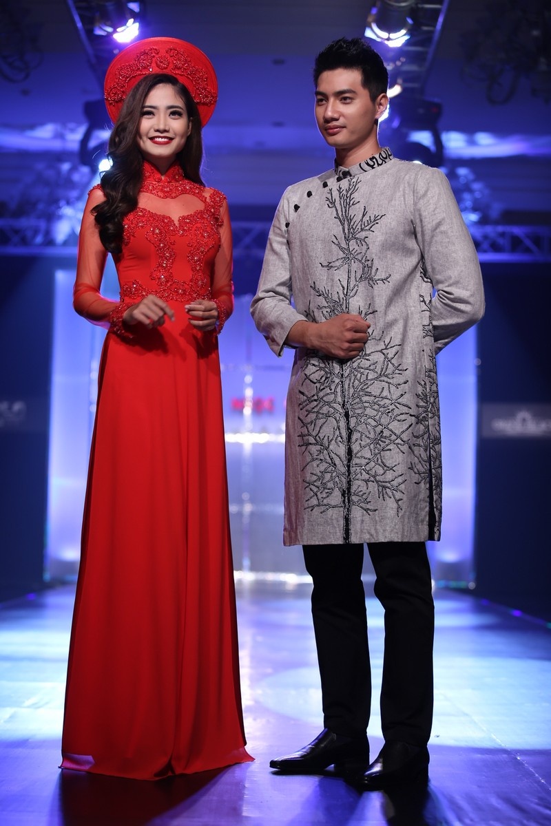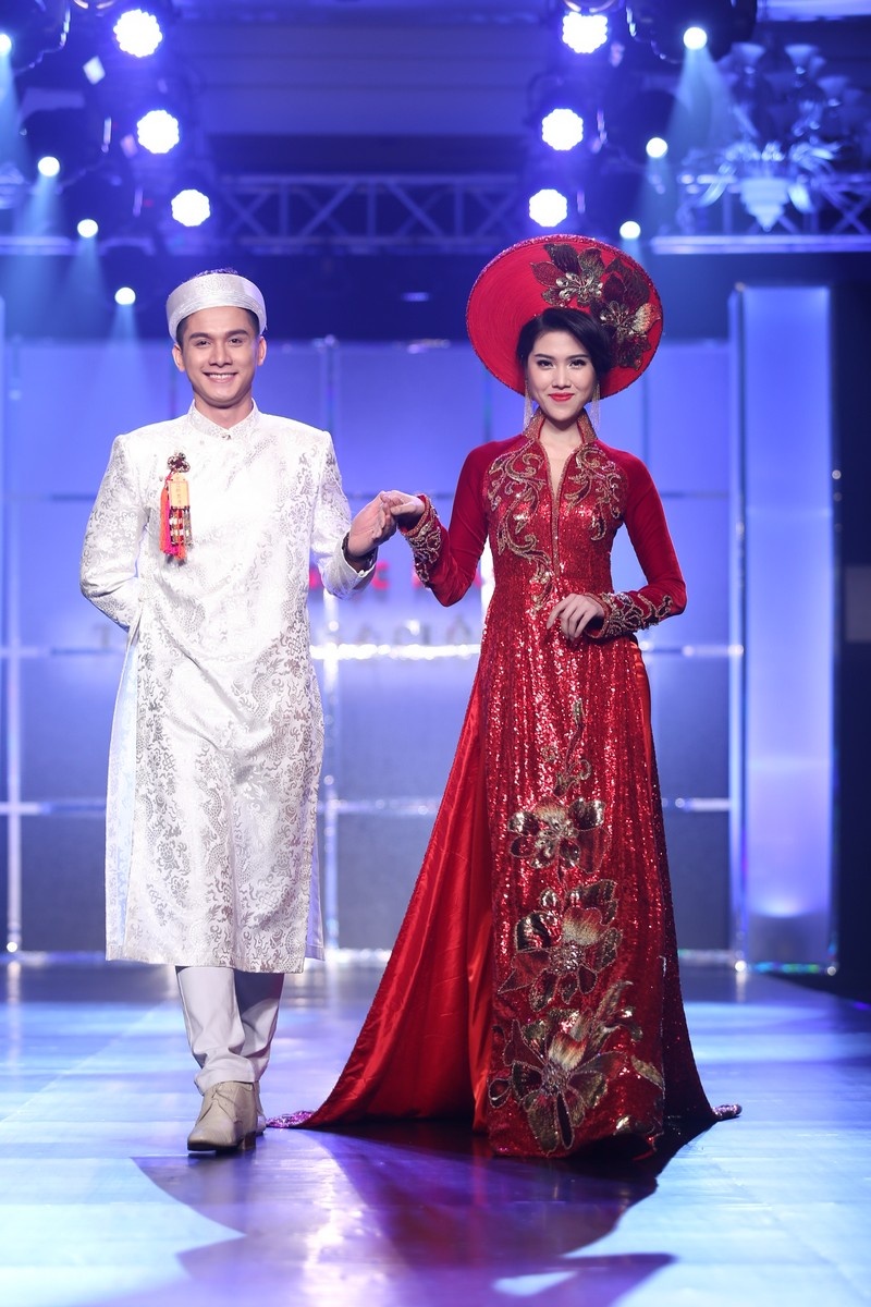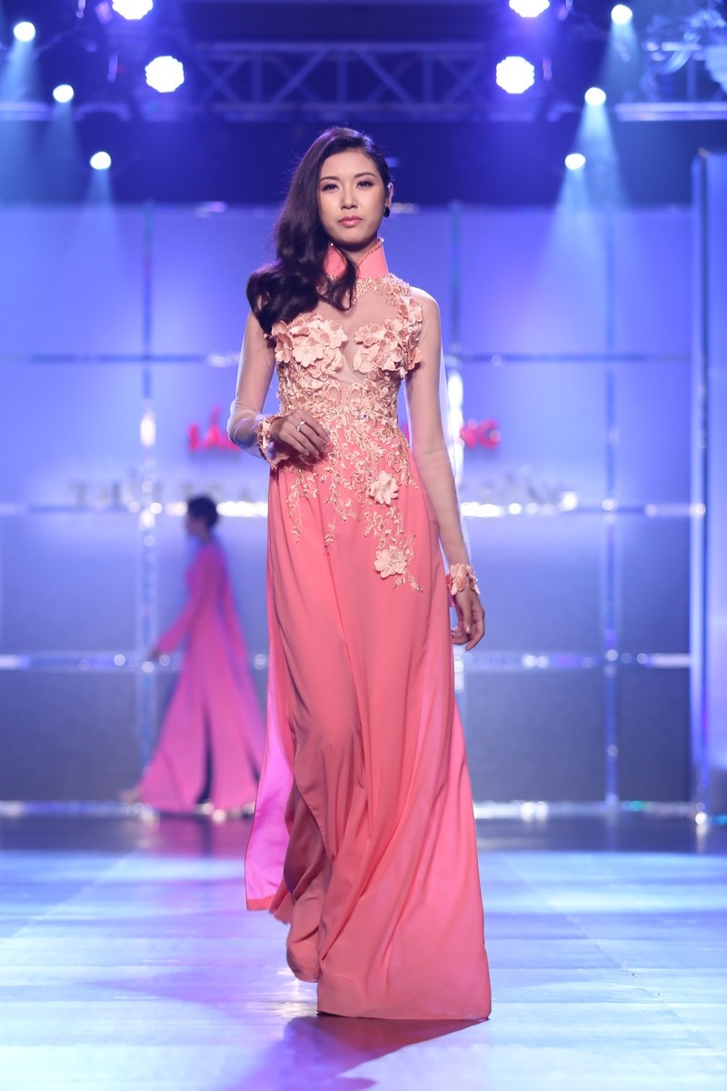 | Ngoài ra, chiếc áo dài còn được kết hợp uyển chuyển giữa nét cổ điển và xu hướng hiện đại. |