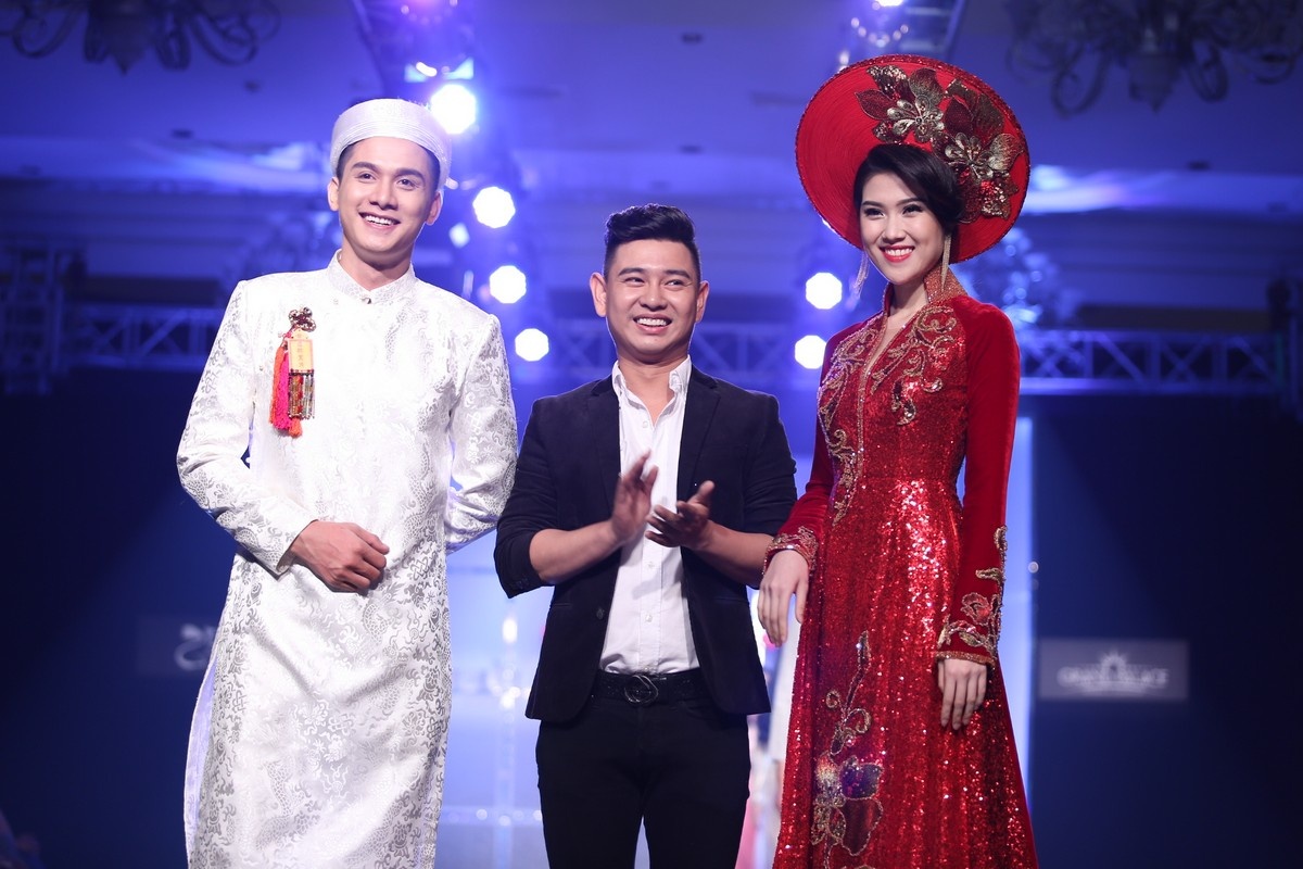 Huỳnh Lợi cùng hai người mẫu chào khán giả.