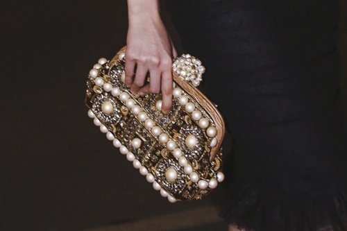 | Cô sử dụng chiếc túi cầm tay đính ngọc trai vô cùng sang trọng của thương hiệu cao cấp D&G. |