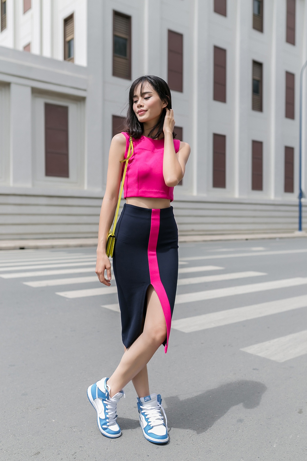 | Chân dài cá tính đổi style với mốt crop-top năng động, hiện đại. Set đồ có họa tiết và màu sắc tươi trẻ. |