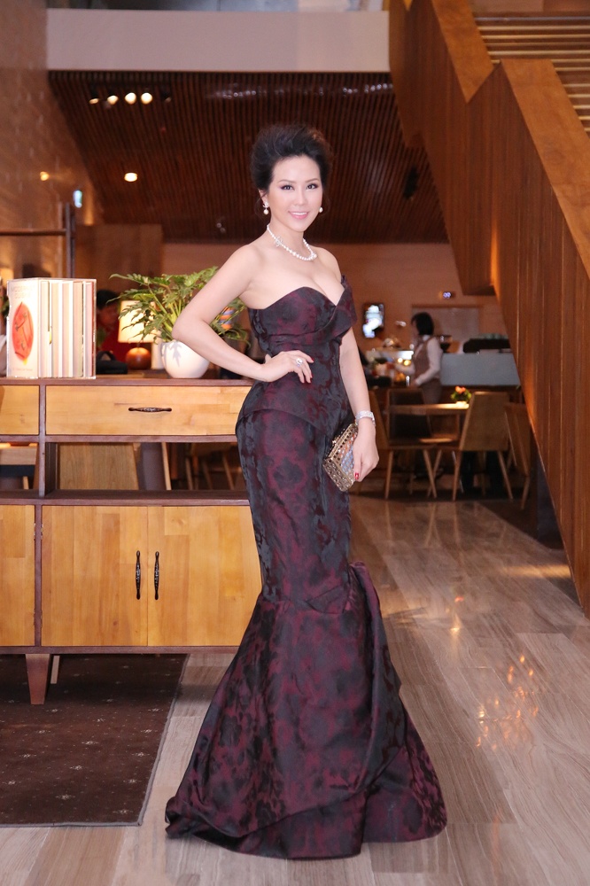 | Tham dự sự kiện giải trí diễn ra vào tối ngày 21/1, tại TP HCM, hoa hậu quý bà Thu Hoài nổi bật giữa dàn mỹ nhân Việt bởi phong cách thời trang sang trọng và quyến rũ. Lần này, người đẹp doanh nhân diện bộ trang phục khoe vai trần gợi cảm của NTK Công Trí. Bộ cánh có gam màu đỏ booc-đô, họa tiết hoa hồng. |