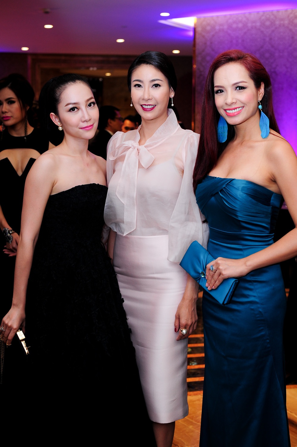 | Cựu hoa hậu Hà Kiều Anh diện đầm trắng thanh lịch nổi bật cạnh Thúy Hạnh và Linh Nga. |