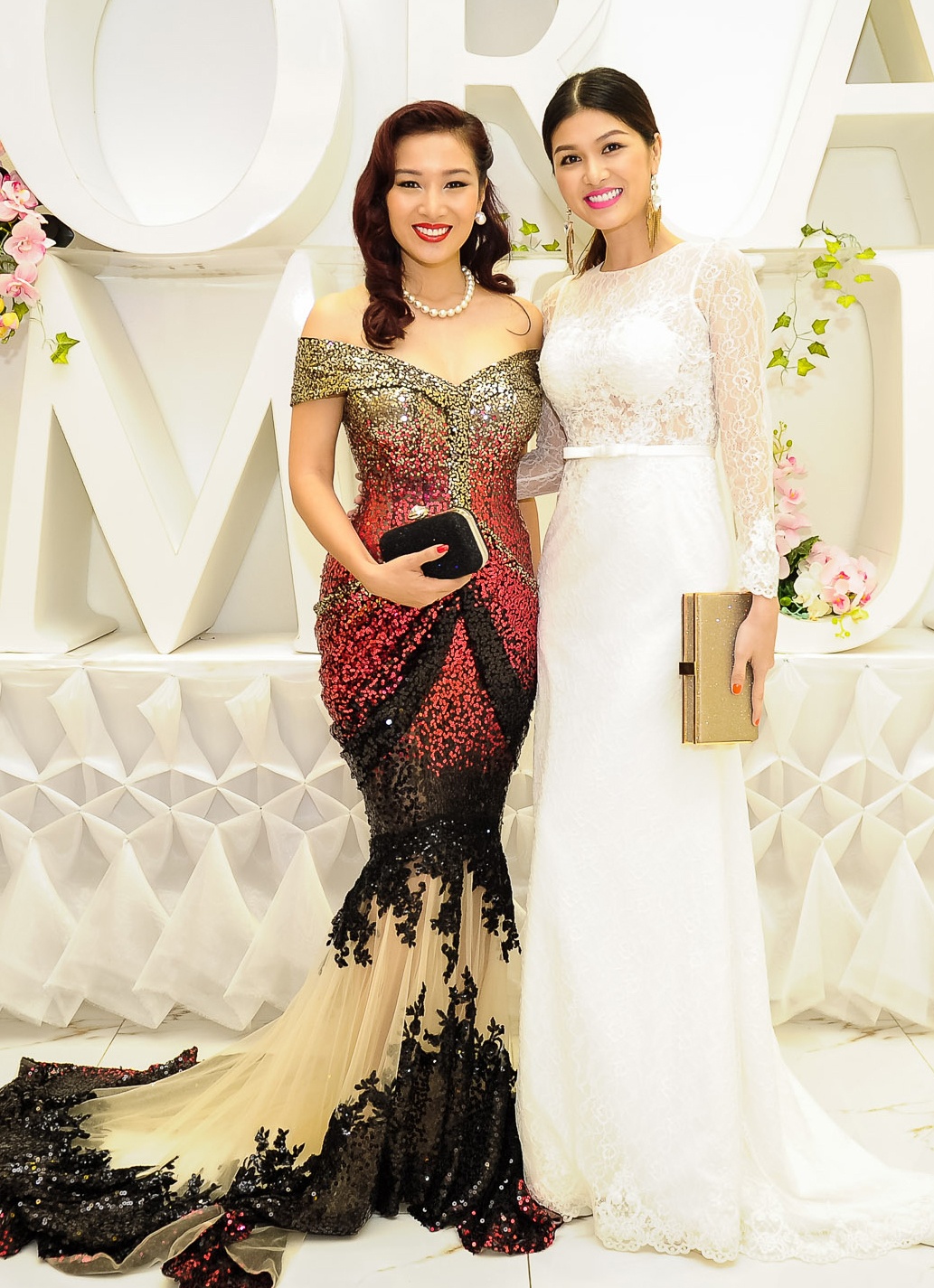 | Người đẹp Oanh Yến diện đầm trắng xuyên thấu chụp cùng hoa khôi Thu Hương. |