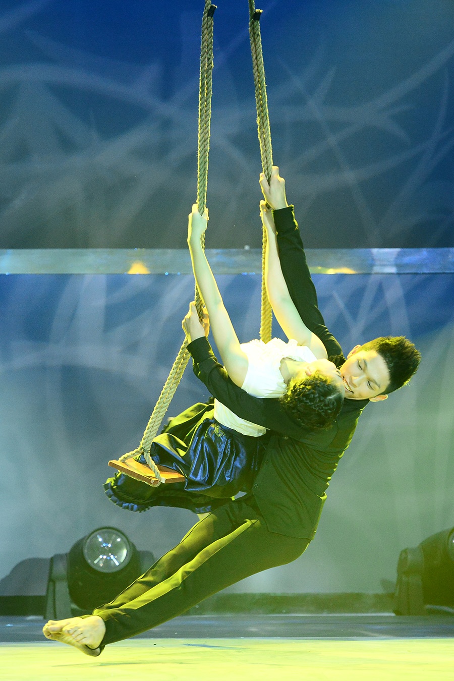 Cũng mang đến cảm giác nhưng khi truyền tải câu chuyện tình yêu, cặp Hoàng Minh – Gia Hân lại thể hiện dồn dập đúng như thông điệp “yêu, yêu, yêu” của John Huy Trần ở thể loại đương đại. Những bước chân thoăn thoắt, xoay vòng và điểm nhấn là chiếc xích đu mang đến sự tươi trẻ cho cặp đôi mới này.