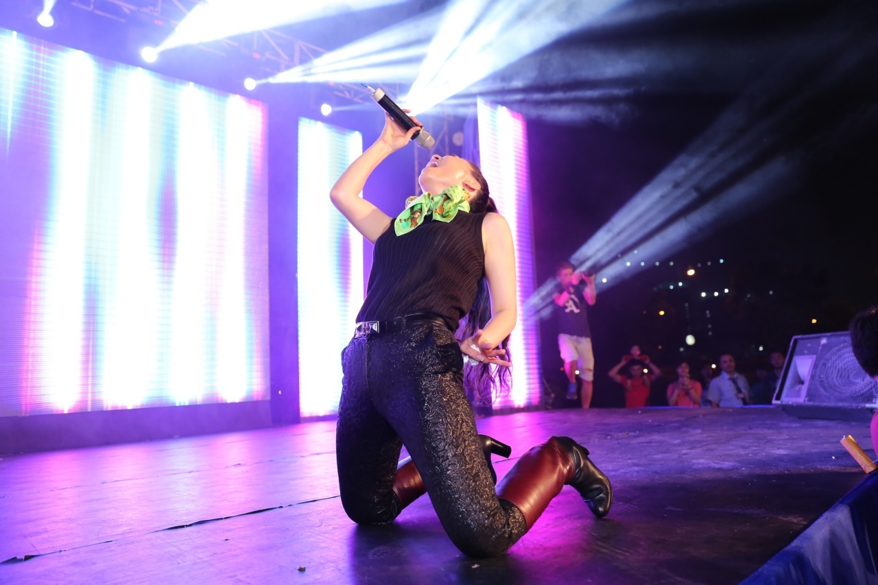 | Phong cách trình diễn máu lửa và phiêu của Thu Minh đã khiến sân khấu nóng lên rất nhiều. Các khán giả sẽ cũng vì thế mà cổ vũ sung sức hơn bao giờ hết |