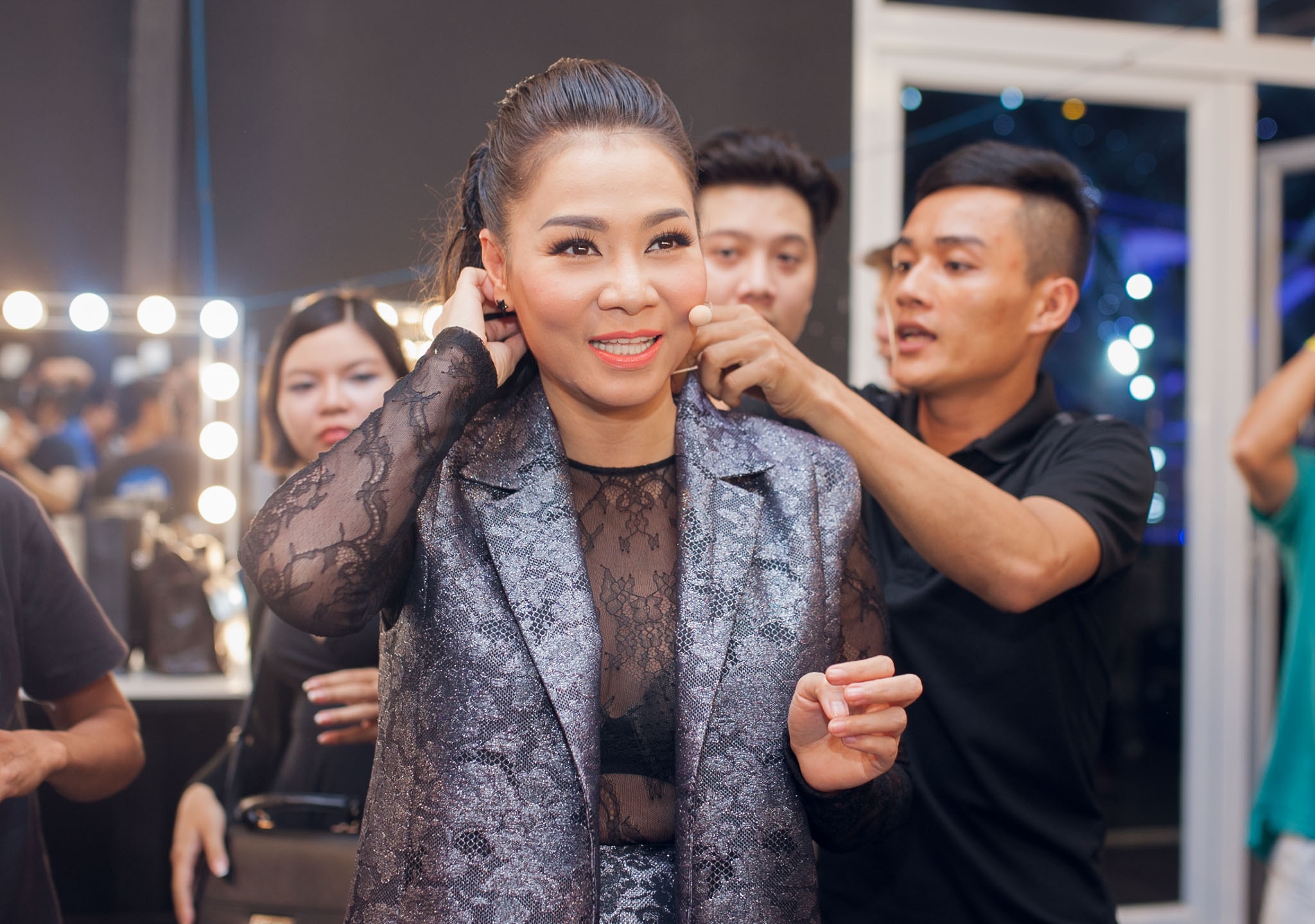 | Cô trò chuyện với top 5 Vietnam Idol trong hậu trường trước giờ lên sóng. Sự trở lại của Thu Minh truyền thêm lửa cho các thí sinh trong giai đoạn nước rút của cuộc thi.