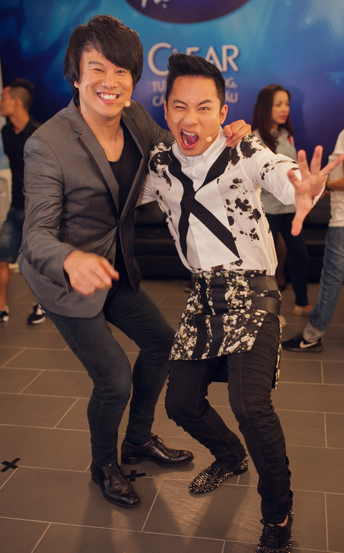 | Divo và nhạc sĩ, ca sĩ Thanh Bùi nhí nhảnh trước ống kính. Ngồi ghế nóng Vietnam Idol, Tùng Dương chia sẻ, anh thích những thí sinh dám nghĩ, dám làm, dám liều và dám mơ ước. |