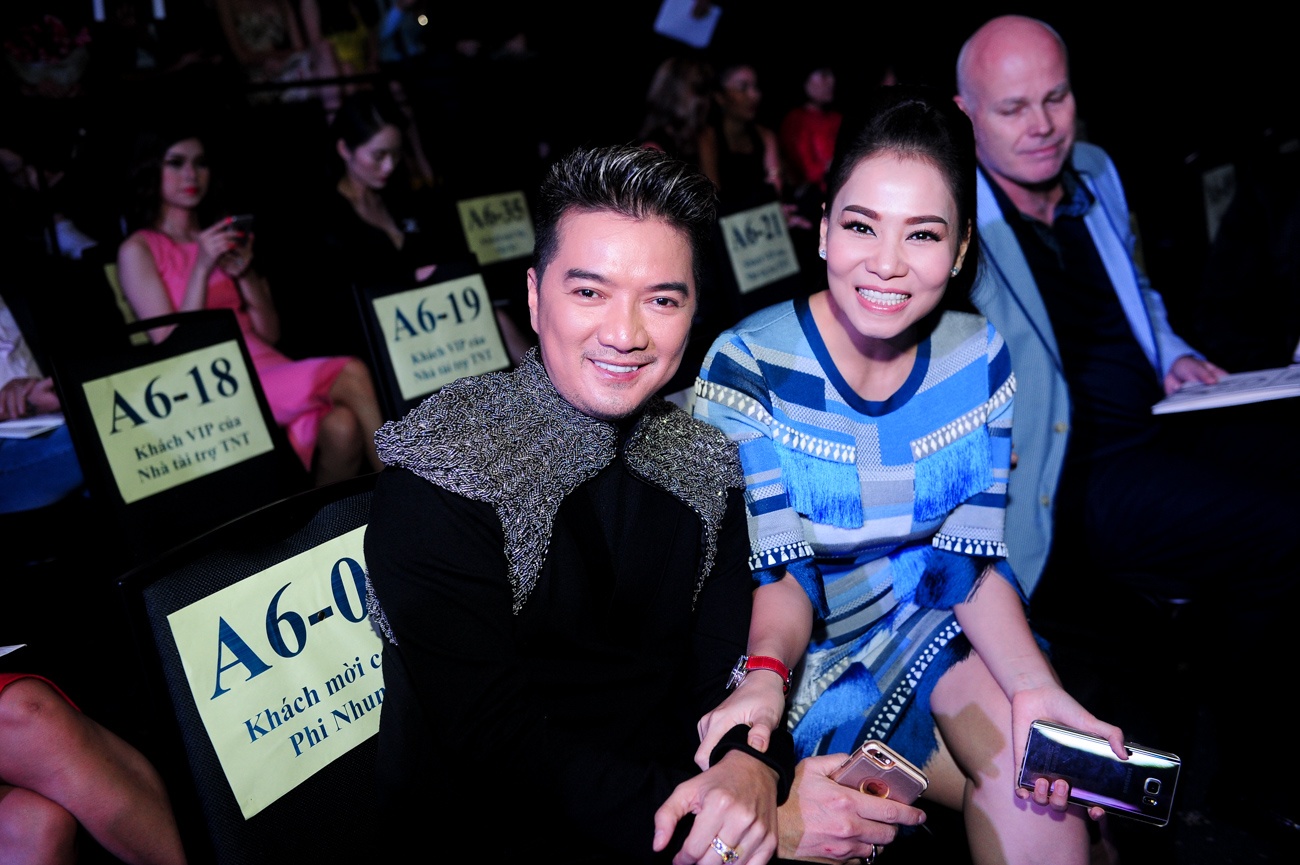| Nữ ca sĩ vui vẻ khi hội ngộ cùng đồng nghiệp Đàm Vĩnh Hưng. Tại sự kiện, giọng ca Bình minh sẽ mang em đi nhận giải thưởng giải fashionista do chính bà phó giám đốc Đại học nghệ thuật Mỹ chấm điểm. |