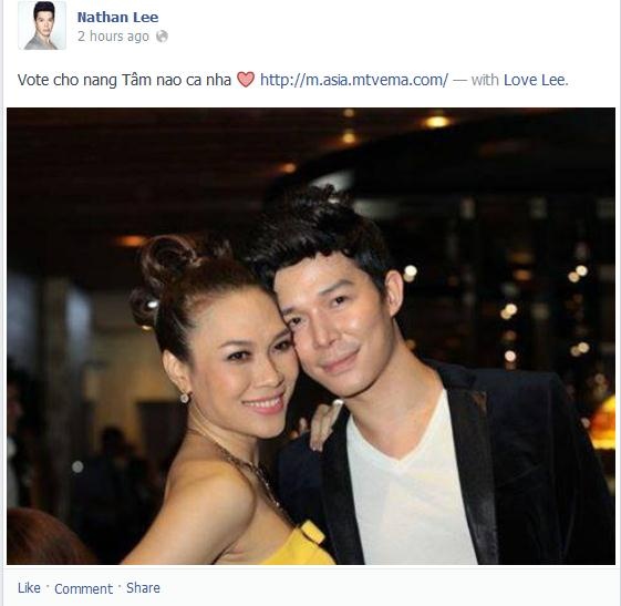 Nathan Lee chia sẻ hình ảnh chụp cùng Mỹ Tâm cùng lời nhắn gửi vote cho "nàng Tâm".