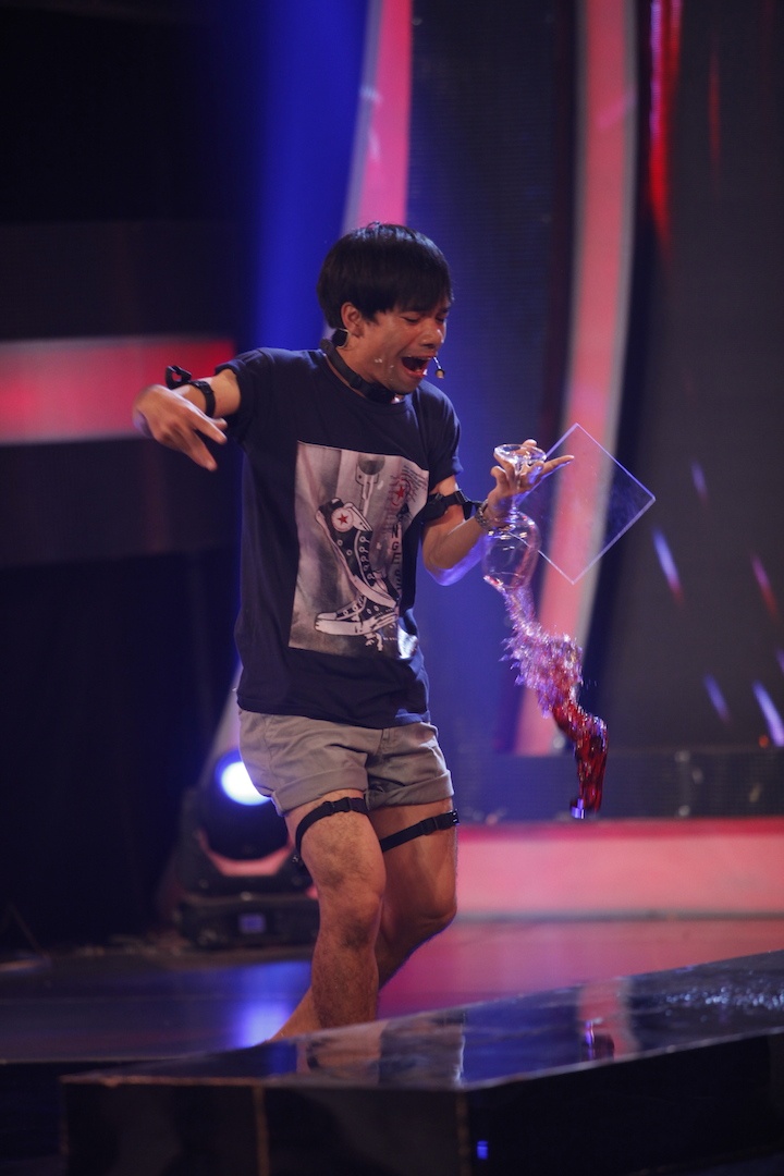 Trong đó, anh phải vừa hát, vừa phục vụ món ăn trong khi bị điện giật liên hồi khiến thức ăn, nước uống rơi rớt tung tóe. Khán giả hò reo trước màn thể hiện của anh chàng người Churu.
