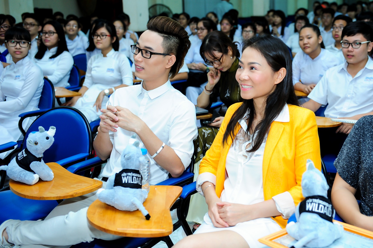 | Trong những ngày qua, Thu Minh và Trúc Nhân đã đến với các em học sinh của 2 ngôi trường THPT Chuyên Lê Hồng Phong và Marie Curie để giao lưu và chia sẻ thông tin. |