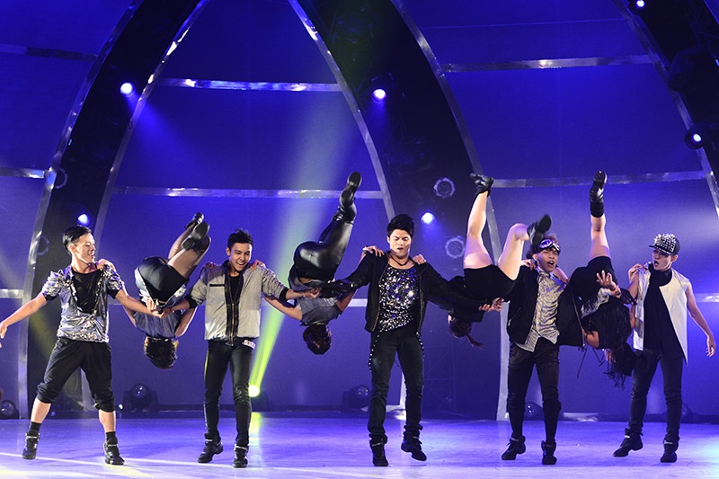 Quán quân Lâm Vinh Hải cùng những người bạn trong vũ đoạn UDG cũng mang tới một tiết mục vô cùng sôi động, hòa cùng I like move it. |