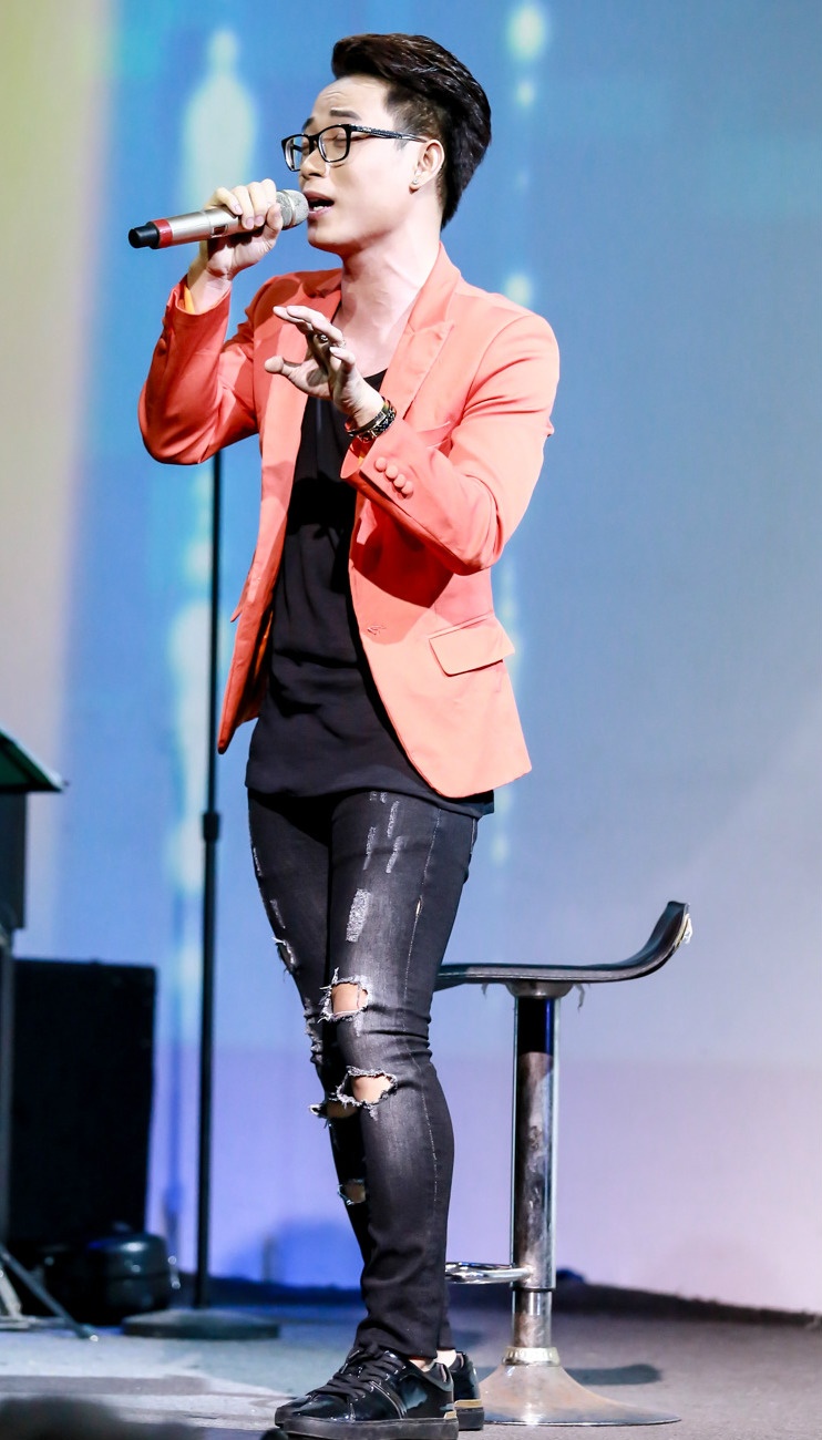 | Trọng Hiếu với phong cách thư sinh, anh không quên gửi lời cảm ơn đến cô giáo. |
