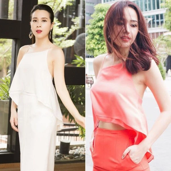 | Lưu Hương Giang và Mai Phương Thúy đụng hàng thiết kế hai dây phóng khoáng và gợi cảm. Tông màu trắng và cam mang đến vẻ đẹp khác biệt cho bà mẹ một con và hoa hậu. |