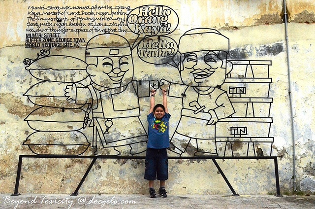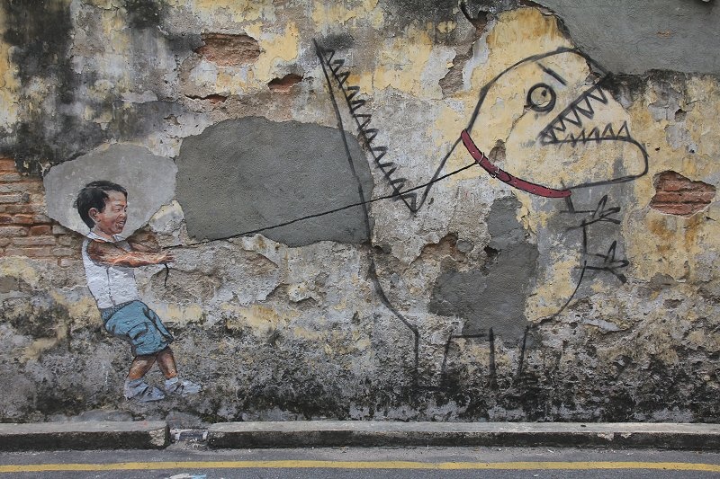 George Town là thủ phủ bang Penang của Malaysia. Kể từ khi được UNESCO công nhận là di sản thế giới, nhiều dự án nghệ thuật đã được thực hiện nhằm giới thiệu, quảng bá về văn hóa, du lịch nơi đây. Đó cũng chính là khởi nguồn cho những bức tranh tường đầy sống động mà bạn bắt gặp trên đường phố Penang ngày nay. Điều đáng nói là dù vẽ trên tường, nhưng những bức tranh này không hề phá vỡ cảnh quan khu phố cổ.
