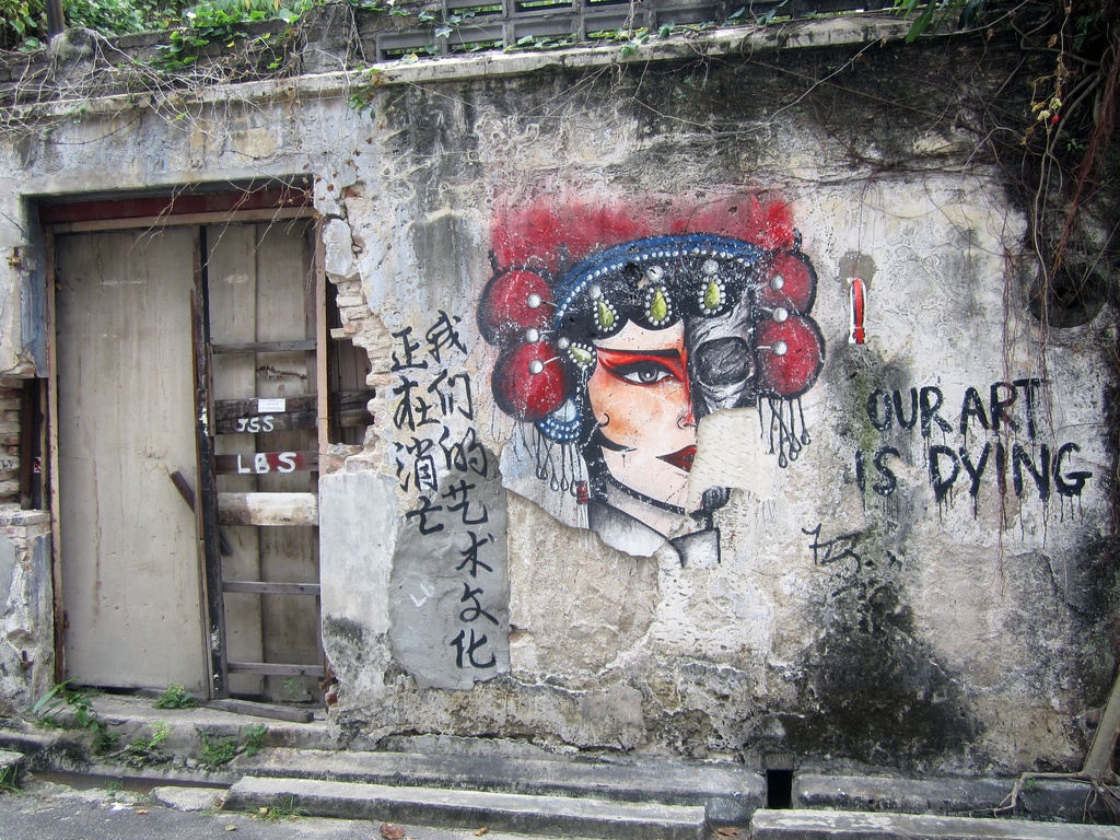 Một bức vẽ tên "Our art is dying" (nghệ thuật của chúng tôi đang chết) như lời kêu gọi cho nghệ thuật truyền thống đang dần bị mai một.