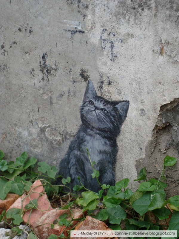Chú mèo nhỏ ở một góc tường. Đây là một trong những bức vẽ thuộc dự án "101 Lost Kittens" (101 chú mèo con bị lạc).