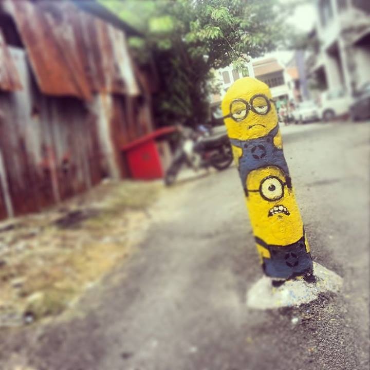 Không chỉ có những bức vẽ kể về văn hóa, đời sống xưa, ở Penang, bạn còn dễ bắt gặp những tác phẩm mang đầy hơi thở hiện đại, như những chú Minion trong loạt phim Kẻ cắp mặt trăng này.