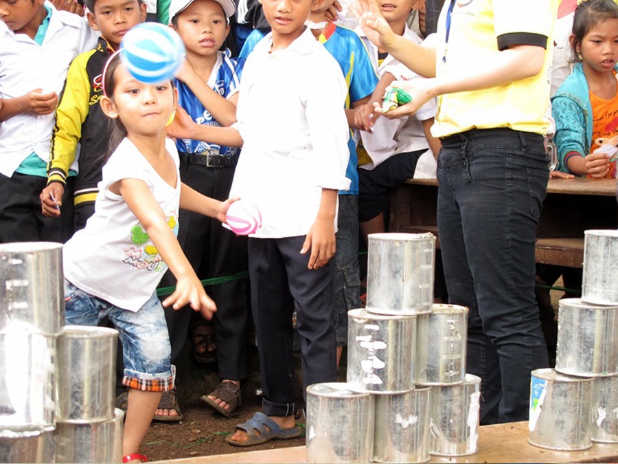 | Du khách tham gia ném lon. Ảnh: Vinh Sang. |