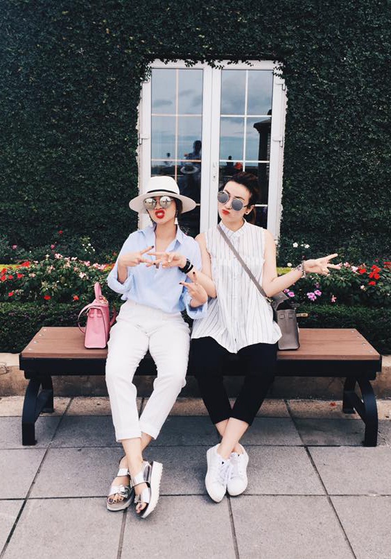| Chị em Song Yến có chuyến du lịch Hàn Quốc trong tuần qua. Trên trang cá nhân, họ khoe hình ảnh thời trang đậm cá tính. Yến Trang nền nã với mốt sơ-mi, quần âu lịch thiệp, trong khi "Én em" tinh nghịch với áo suông, quần legging và giày bata. |