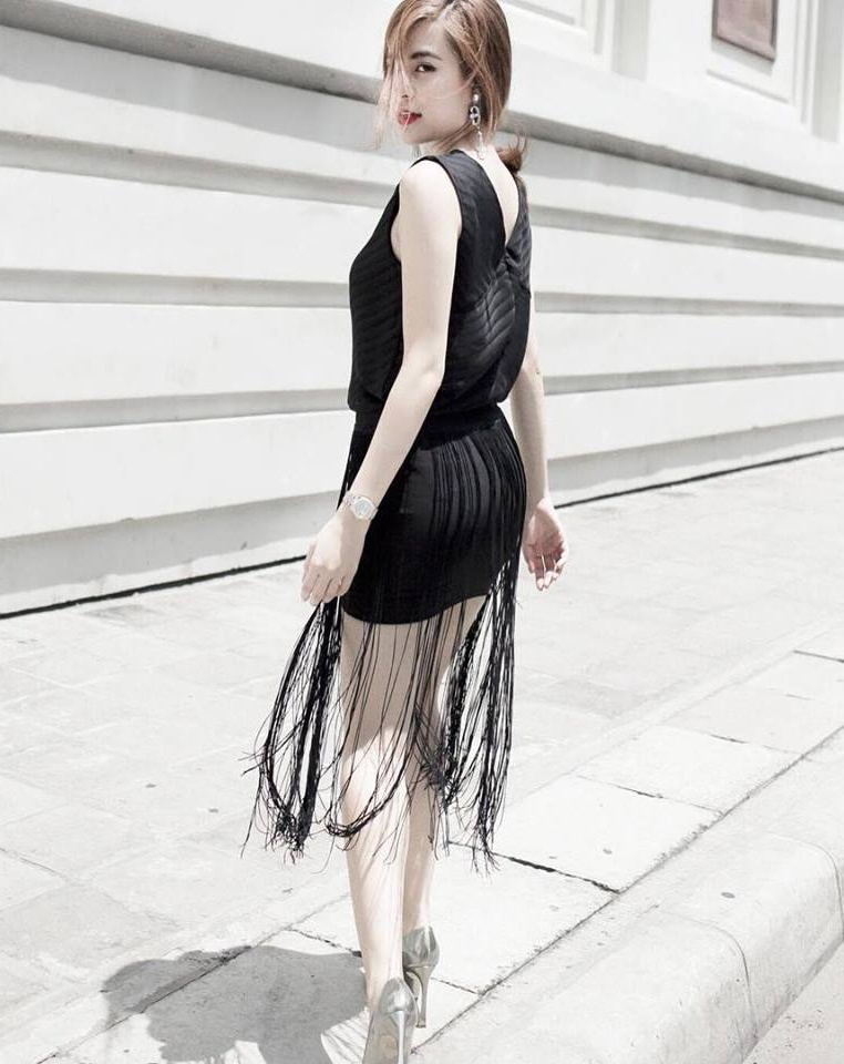 | Trong khi đó, Hoàng Thùy Linh lăng xê mốt váy tua rua hiện đại và độc đáo. Bộ váy tông đen hợp vóc dáng giúp nữ ca sĩ có chiều cao khiêm tốn nổi bật trên đường phố. |