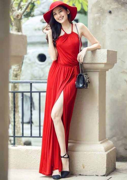 | 2. Váy quấn xẻ: Các mẫu váy nửa kín nửa hở sẽ giúp che bớt một phần cơ thể, tạo cảm giác thon gọn hơn. Mẫu váy này cũng rất hợp với những người có đôi chân dài như Trúc Diễm |