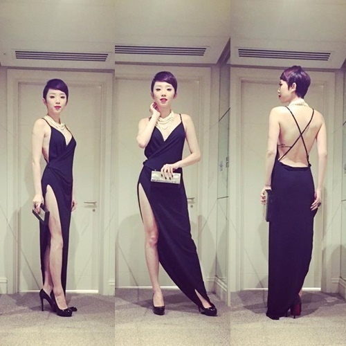 | Tóc Tiên cũng sử dụng váy quấn xẻ sâu để tăng vẻ gợi cảm và làm gọn vóc dáng. |