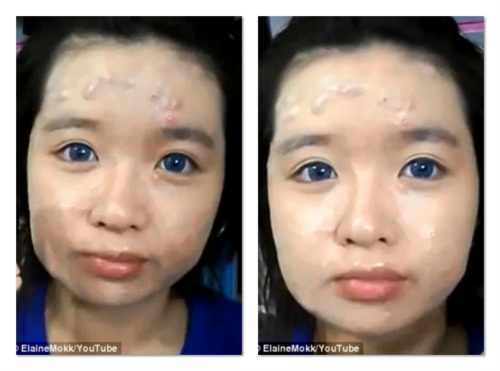 Một Elaine Mokk, 18 tuổi là người gốc Trung Quốc đã mạnh dạn xuất hiện trong clip trên Youtube với làn da đầy những vết loang lổ do mụn gây ra. Trong clip này, cô đã giới thiệu cho người xem một cách make up thông minh che đậy hết toàn bộ mụn nổi và sẹo ở trên khuôn mặt.