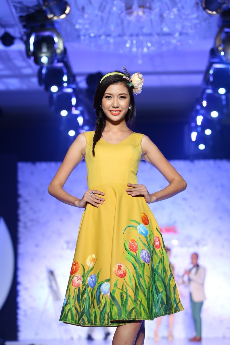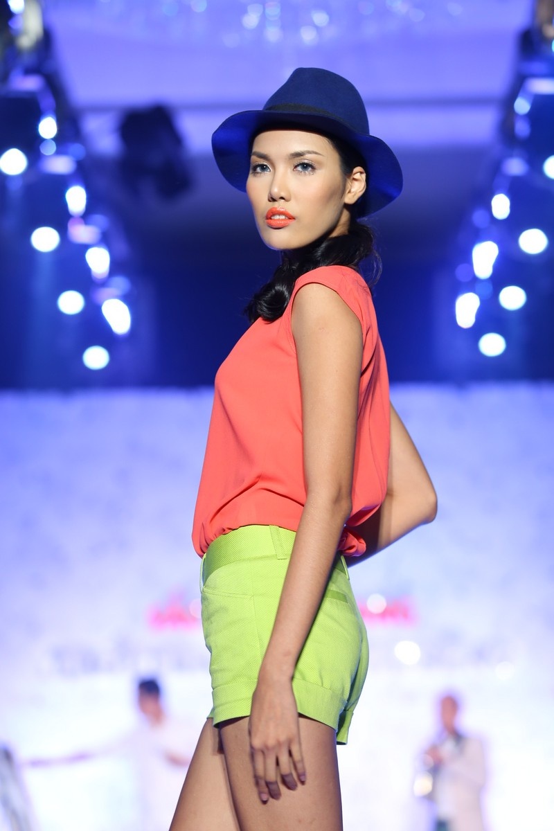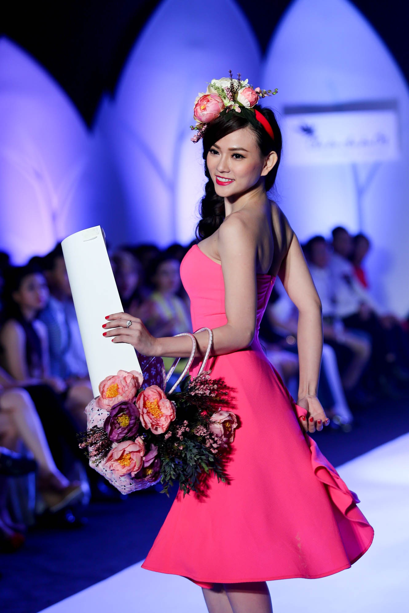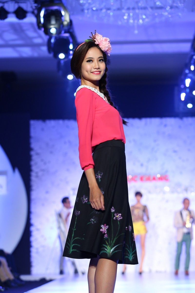 Trên sân khấu thời trang, quán quân Bước nhảy hoàn vũ 2014 tự tin không thua kém dàn chân dài chuyên nghiệp.