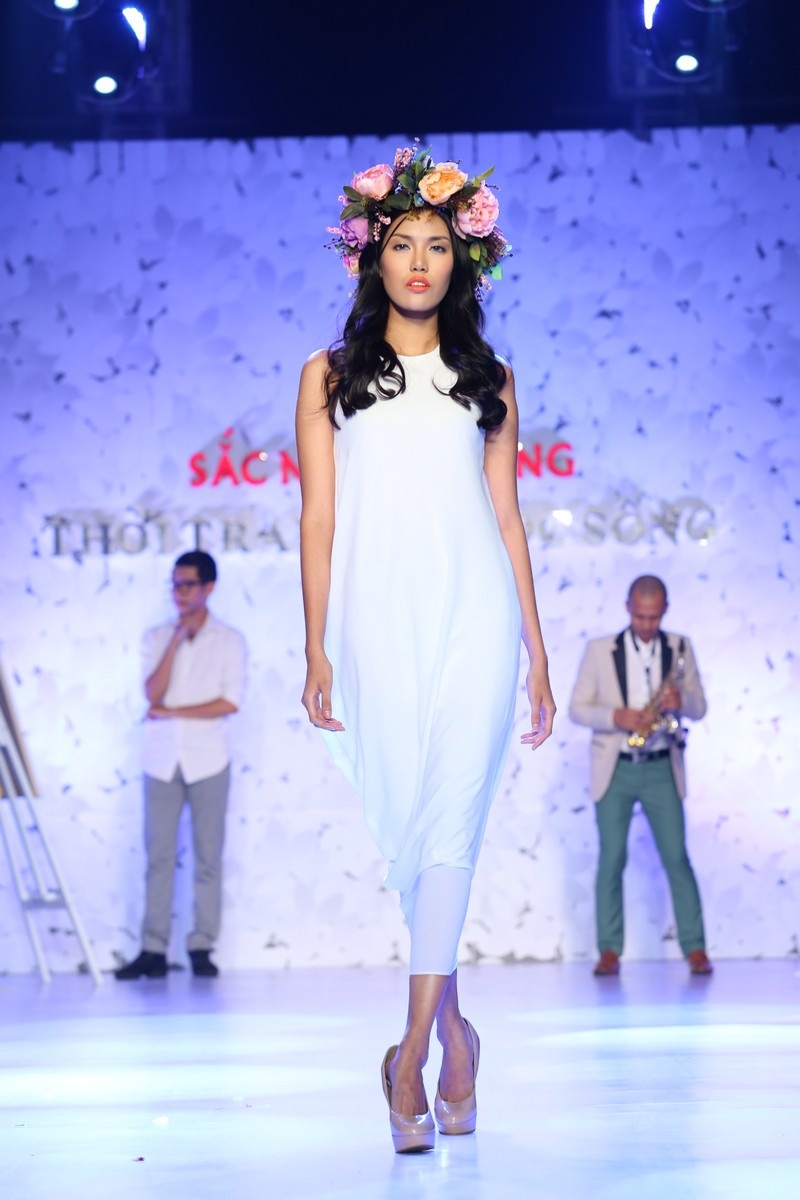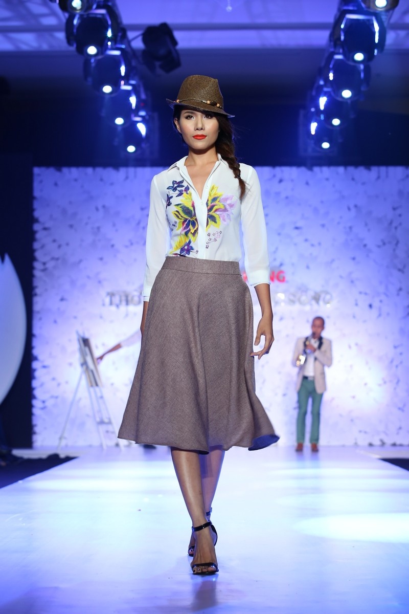 | Buổi diễn có sự góp mặt của siêu mẫu Thanh Hằng. Cô thể hiện tự tin và chuyên nghiệp với vai trò mở màn. |