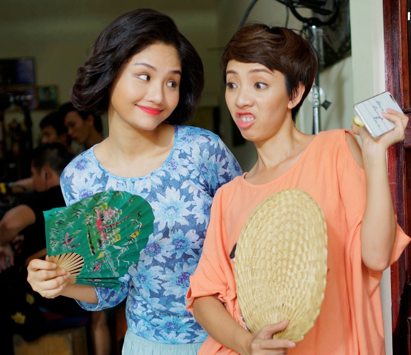 | Vào vai cô gái vừa xấu, vừa vô duyên, Thu Trang khiến bạn diễn không khỏi bật cười vì những câu pha trò và tạo hình của mình. Giải thích về chiếc kẹp tóc lớn trên đầu, "hoa hậu hài" cho biết: "Nóng quá nên tôi mượn kẹp cài tóc cho mát. Ai ngờ đạo diễn nhìn thấy hợp bắt tui cài kẹp to đùng từ đầu đến cuối phim". |