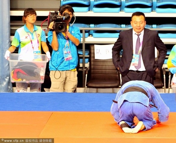 Tại đại hội thể thao Quốc tế lần thứ 12 đang diễn ra tại tỉnh Liêu Ninh, Trung Quốc, sau khi không thể mang về tấm huy chương cho đoàn thể thao nước nhà, Vân Long đã không ngừng đổ lỗi cho… bản thân anh. Ngay sau đó VĐV này đã quỳ gối một hồi lâu trước mặt HLV của mình như một cách để nói lời xin lỗi.