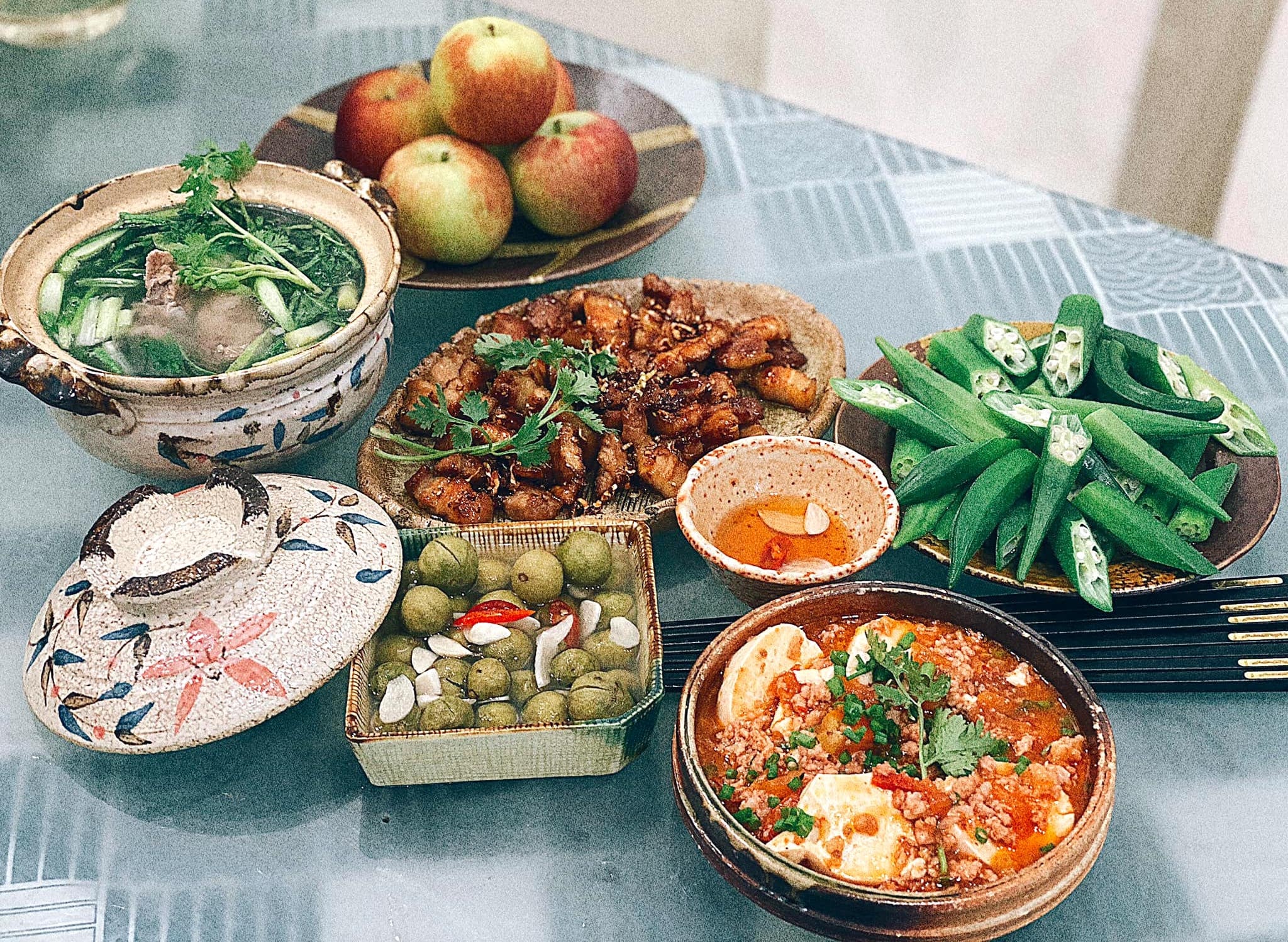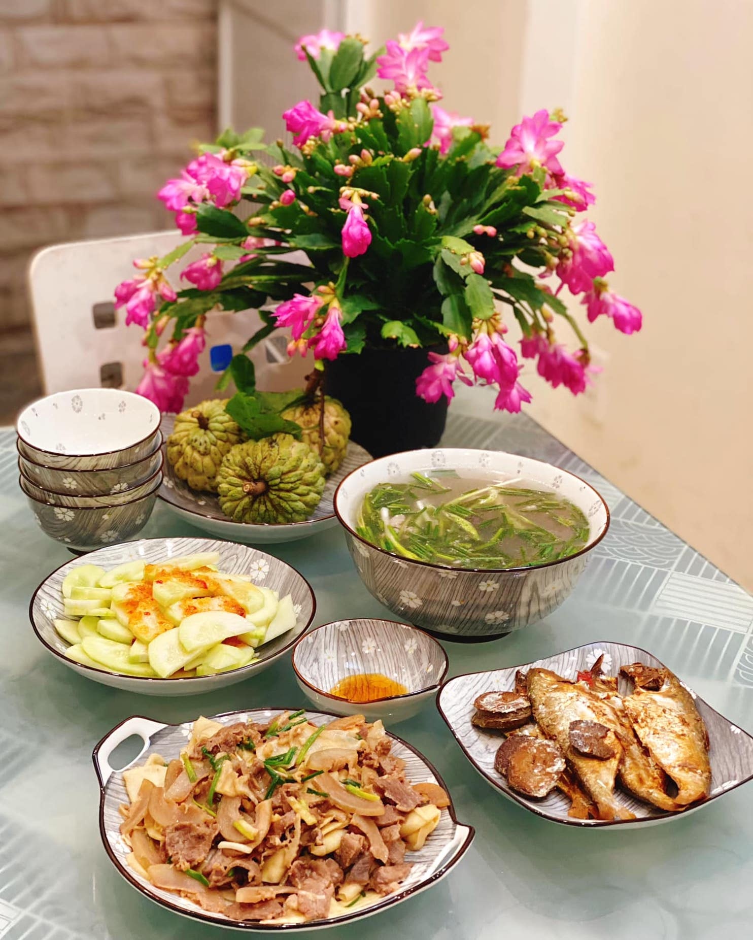 Vì đặc thù công việc, tôi thường về nhà tầm 18h, lúc nào cũng tất bật chuẩn bị cơm tối nhanh nhất có thể. Bữa cơm nhà thường có canh, món mặn và thêm rau.