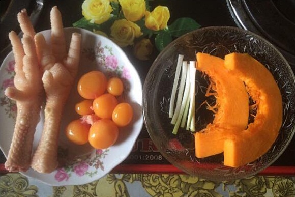 Cách nấu cháo chân gà, trứng mây, bí đỏ