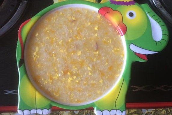 | Cháo chân gà, trứng mây, bí đỏ sau khi hoàn thành. |