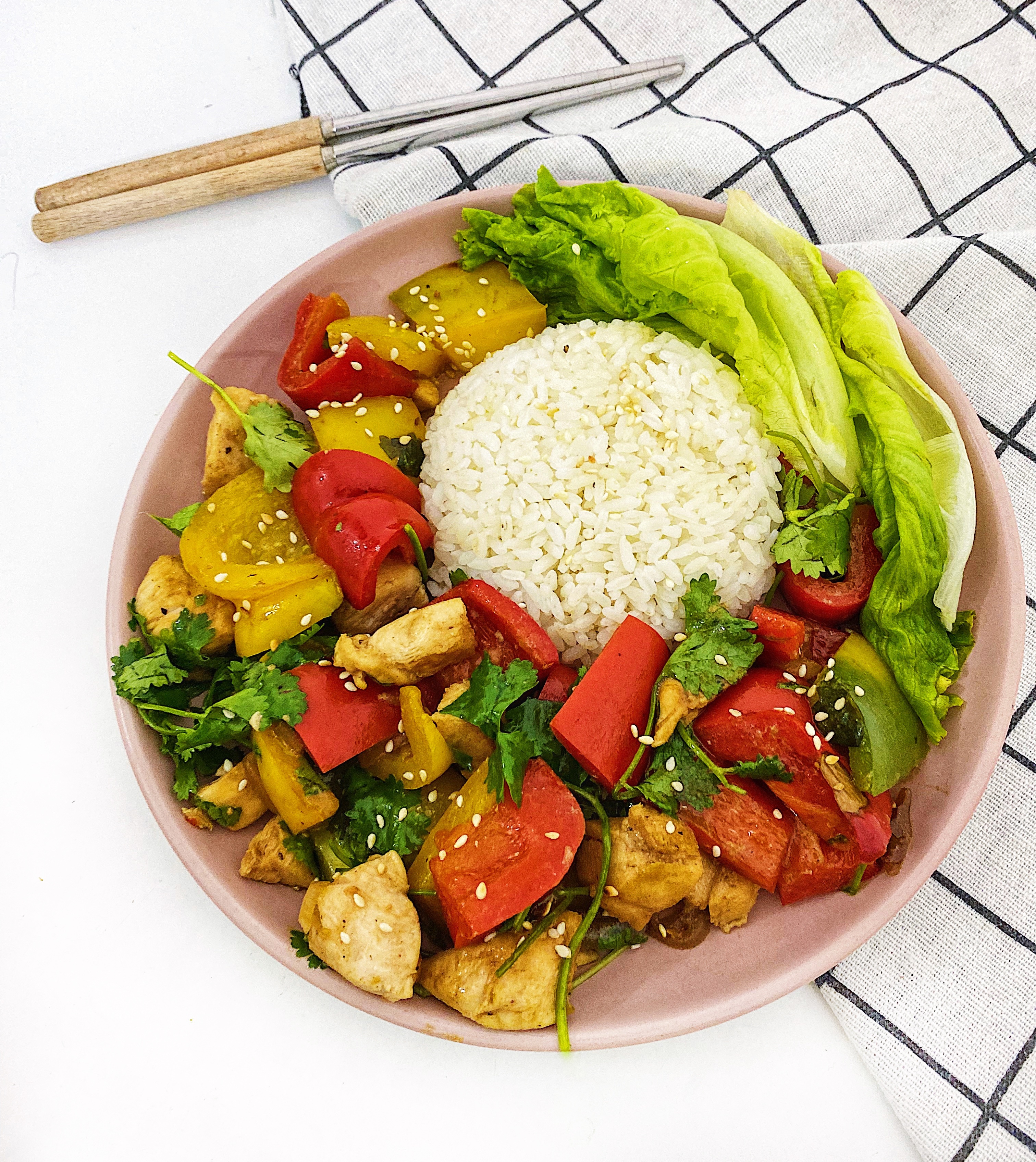 Bước 4: Thêm ớt chuông vào đảo đều trên lửa lớn khoảng 2 phút, sau đó nêm nếm theo khẩu vị và phục vụ ra đĩa.