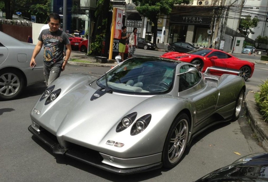 | Siêu xe Pagani Zonda C12-S cùng hàng loạt chiếc xe đắt tiền xuất hiện trên một tuyến phố ở Lào. Ảnh: Autogespot. |