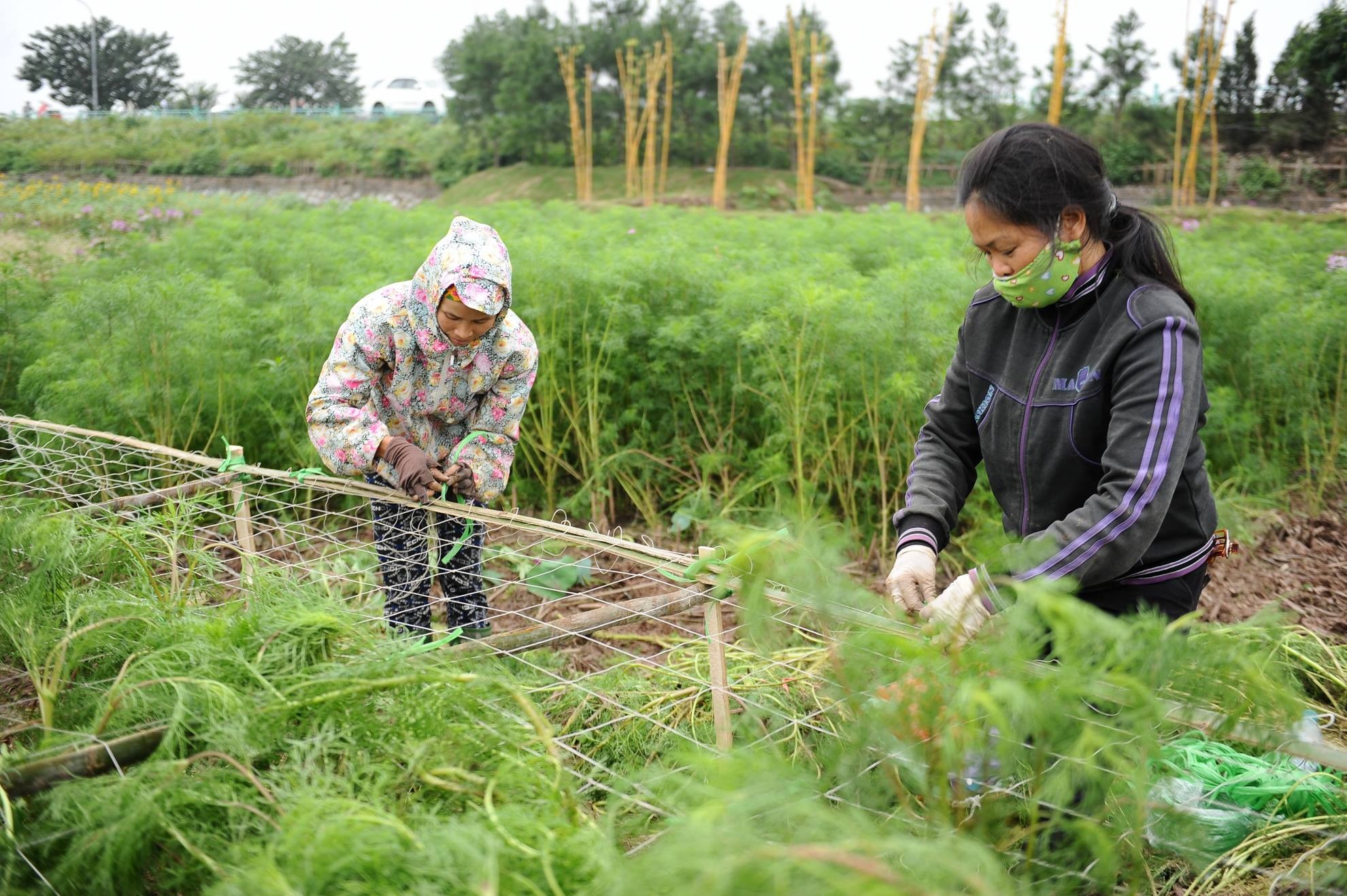| Những luống hoa cosmos (hoa bươm bướm) bị giẫm nát khá nhiều nên chủ vườn đã cho công nhân thu gom trồng lại. Những luống hoa này sẽ được căng lưới và quây lại để tránh du khách giẫm phải. |