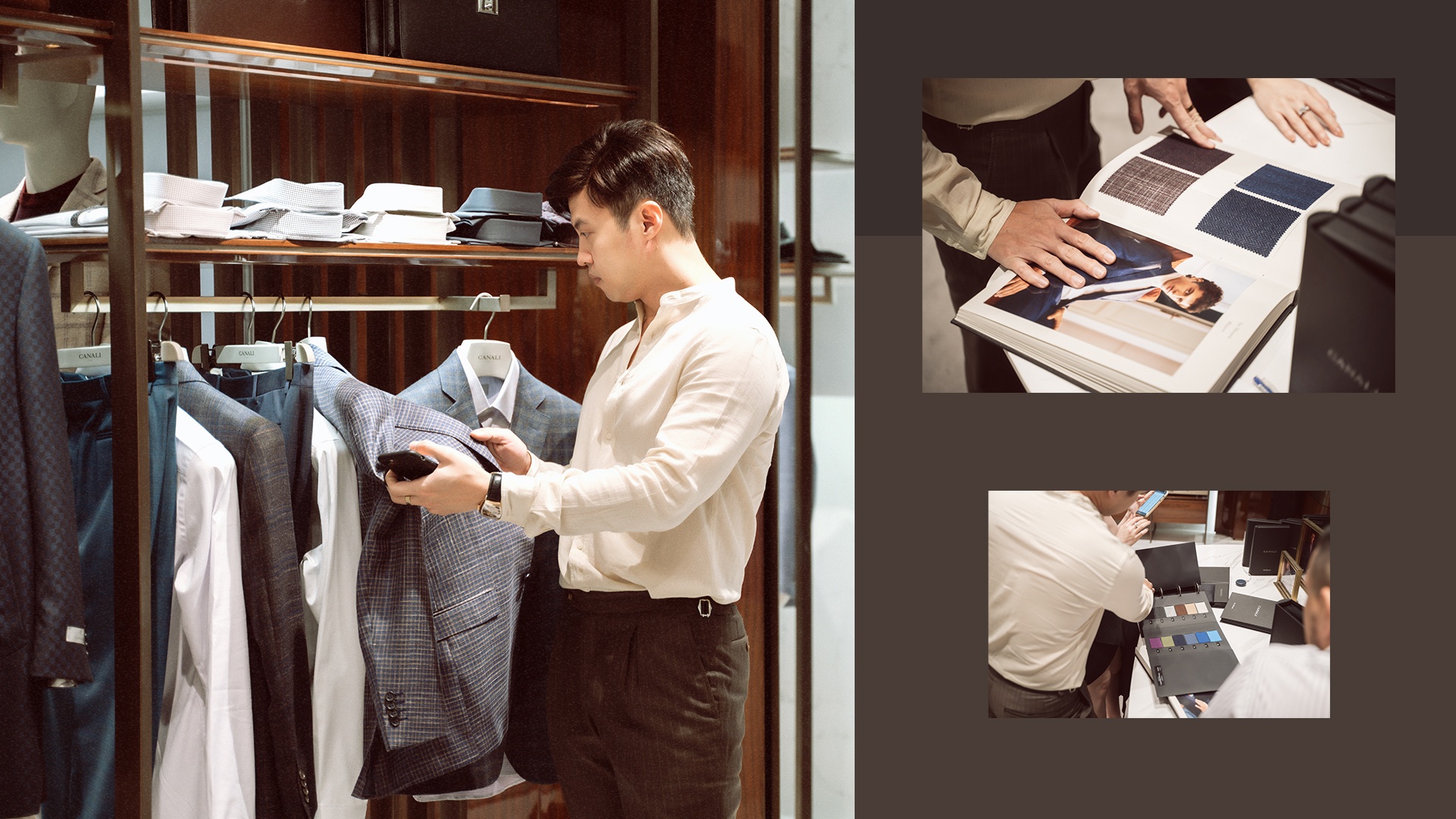 Chia sẻ cảm nhận về Canali, NTK nội thất Quách Thái Công cho biết anh là người rất khó tính khi lựa chọn nhà may uy tín để may đo âu phục và thường chỉ mặc bespoke suit (âu phục may đo hoàn toàn). Nhưng Canali với cam kết về chất liệu cao cấp và kỹ thuật thủ công bậc thầy đã khiến anh thay đổi quan điểm và quyết định lựa chọn dịch vụ MTM.