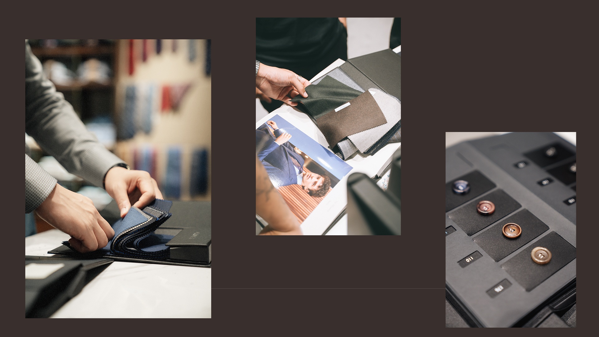 Đẳng cấp của mỗi bộ trang phục Canali không chỉ nằm ở kiểu dáng, sự tinh tế của đường kim, mũi chỉ… mà còn là sự kết hợp hài hòa của chất liệu, màu sắc loại vải. Với hơn 500 mẫu vải từ vải thường, dệt kim, sơ mi đến vải len, lanh, bông, lụa… Canali luôn chọn lọc chất liệu có nguồn gốc đặc biệt và chất lượng cao cấp nhất, phù hợp với phong cách từng khách hàng thượng lưu.