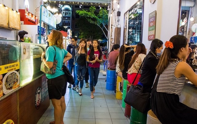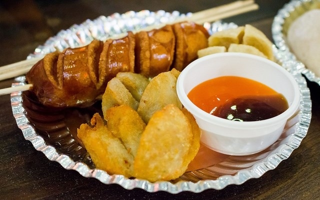 | Bạn có thể ngồi thưởng thức xúc xích, cá viên, bò viên chấm tương ớt cay xè tại bàn với ghế là những chiếc thùng phuy tái chế, hay chọn một góc chất lừ bên bậc thang. Hình thức “take-away” vừa thưởng thức món ăn, vừa nhìn ngắm con phố đẹp nhất Sài thành cũng là lựa chọn được nhiều thực khách yêu thích. |
