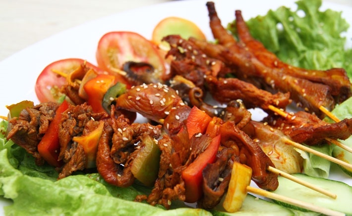 | Đồ nướng tự chọn, đồng giá 50.000 đồng cho combo 4 xiên, từng thớ thịt được nêm nếm đậm đà, vừa ăn. |