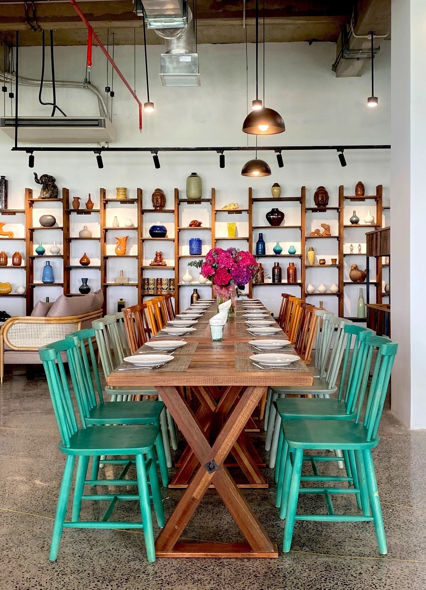- Quầy bar được thiết kế mở, thuận tiện nếu bạn muốn ngồi nhâm nhi thức uống và trò chuyện cùng barista. Khu vực bàn ăn được bố trí tinh tế, phù hợp cho nhóm nhỏ hoặc nhóm đông người.