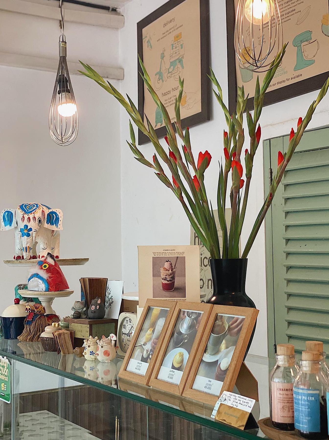 - Tiệm được thiết kế theo phong cách cổ điển phương Tây, đơn giản và sang trọng. Âm nhạc với những giai điệu piano và jazz đầy tính thư giãn. Bầu không khí ấm cúng, thích hợp cho buổi gặp mặt nhẹ nhàng, thân mật.