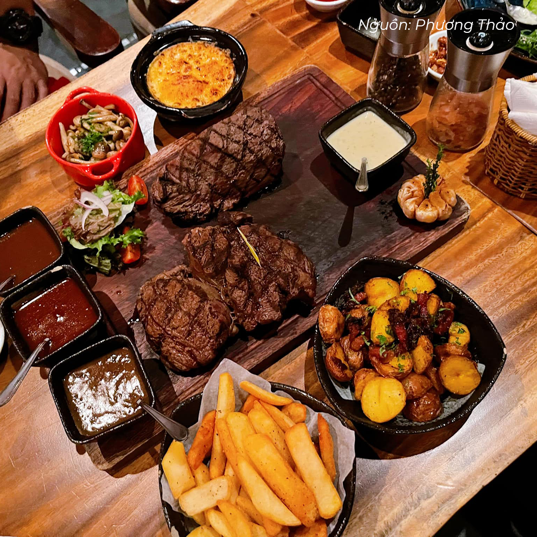 Ngoài steak, nhà hàng cũng phục vụ sò điệp Nhật, vẹm xanh hấp hay phi lê cá thơm ngon. Với sức chứa lớn, đây là địa điểm phù hợp cho các cuộc gặp mặt, hẹn hò.