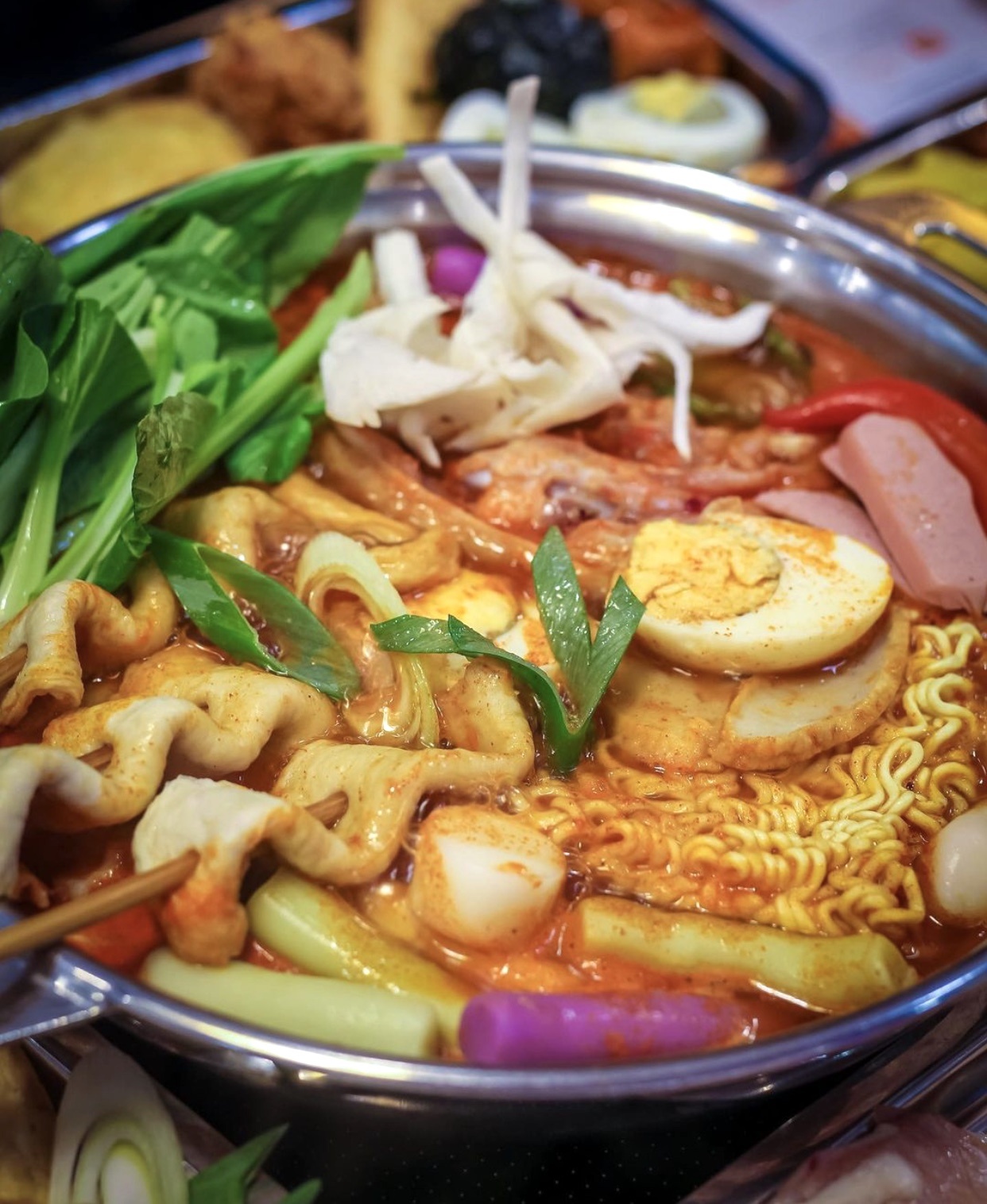 | Thực đơn đa đạng gồm cá viên, xúc xích, chả lụa, chả cá Hàn Quốc. Ngoài ra, cơm nắm rong biển, cơm cuộn, chả cá xiên hay đồ chiên là gợi ý bạn không thể bỏ qua. Lẩu của tiệm có nước dùng quyện sốt cay, sốt tương hay sốt kem béo giúp bạn đổi vị. Tài khoản Bụng Béo Food chia sẻ trên diễn đàn ẩm thực: "Tokbokki phô mai là món bạn nên thử bởi độ béo ngậy hấp dẫn. Với món lẩu, bạn có thể pha nước sốt theo khẩu vị cá nhân để cảm nhận sự đậm đà. Rau và đồ chua cũng được kết hợp làm tăng sự hài hòa". Ảnh: Foodcollectionsmy. |