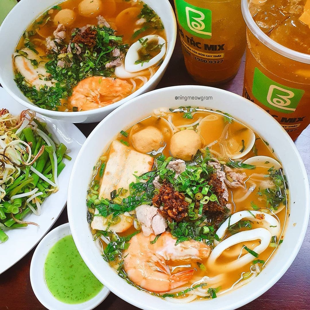 Quán là địa điểm thưởng thức bún Thái hội tụ đầy đủ tiêu chí ngon, rẻ. Từ 25.000 đồng, bạn đã có thể thưởng thúc tô bún gồm các loại thịt, tôm, mực, chả... Nước dùng ở đây được thực khách đánh giá ngọt thanh, vị chua vừa phải. Tuy nhiên, một phần ăn khá ít, bạn có thể gọi thêm topping hoặc bún tùy thích.