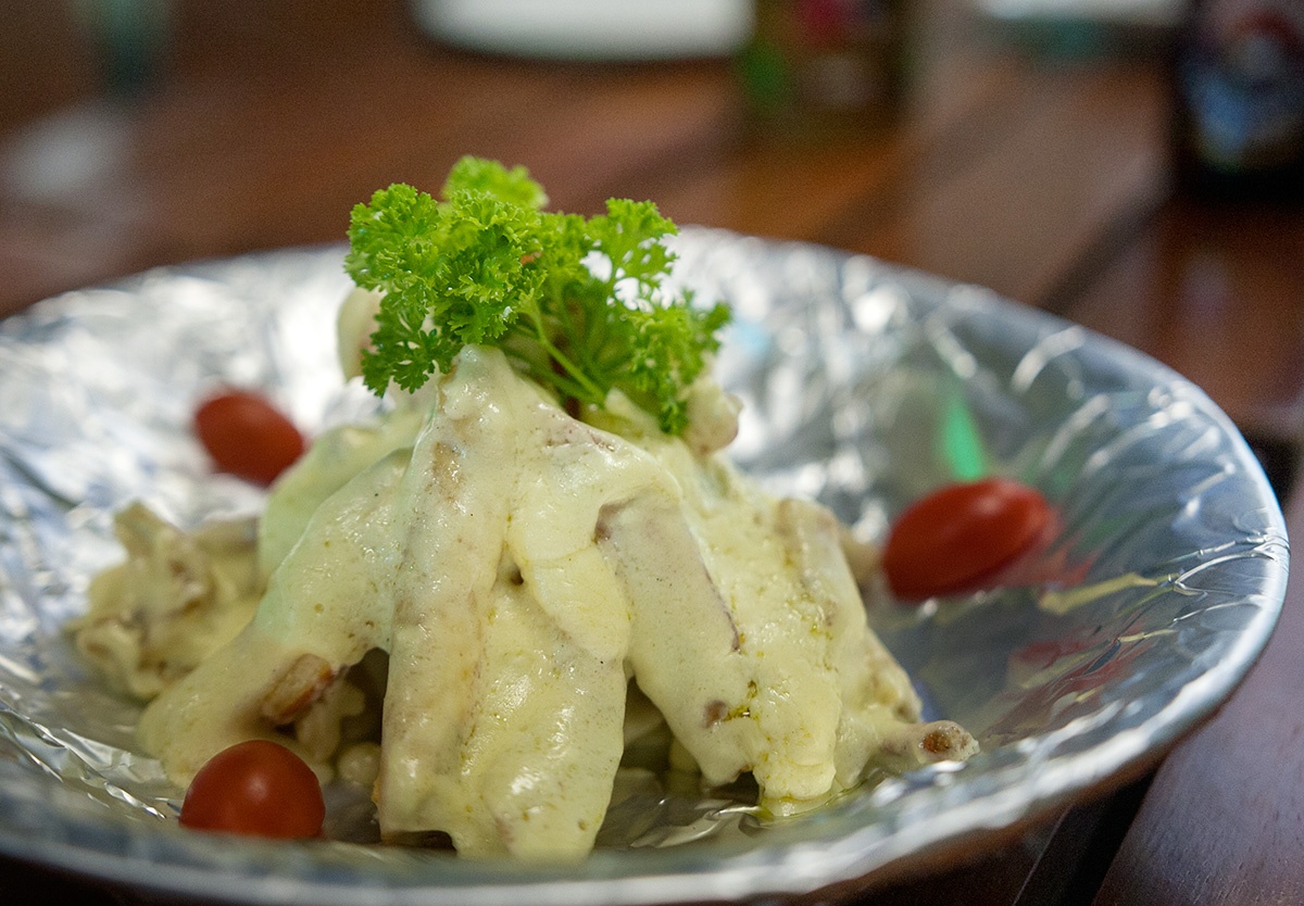 Sự kết hợp của bơ, kem sữa và nhiều loại gia vị khác, cua tuyết chắc thịt, trắng tinh mang hương vị ngọt từ biển lạnh, khác lạ cho người thích thưởng thức hải sản.